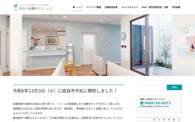 イオンタウン姶良周辺のおすすめAGA治療クリニックは「あおい皮膚科」