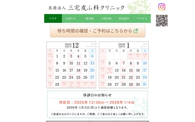 一般皮膚科診療に加えて自費診療でAGA治療を提供しており、地元で気軽に相談できる環境が整っています。待ち時間を確認しながら受診できるのも便利です。