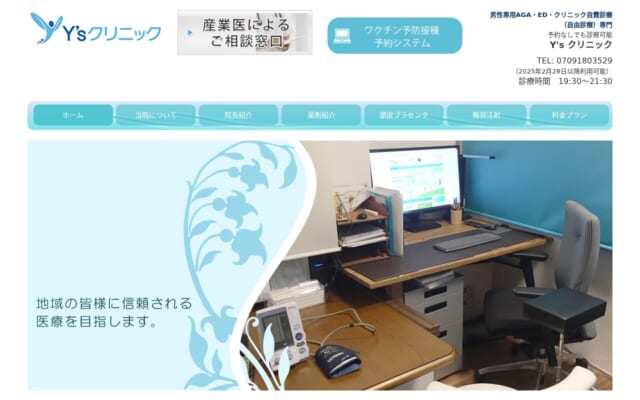 6.Y’sクリニック ![]() | ▼料金 予防:フィナステリド1mg(28日分/28錠): 4,980円/月 発毛:ミノキシジル配合外用液5%「FCI」(1本60ml): 4,800円/月 ▼アクセス: 静岡駅から徒歩5分 | 無料 | フィナステリド フィナステリド1mg(28日分/28錠): 4,980円/月 | フィナ+ミノキシジル ミノキシジル配合外用液5%「FCI」(1本60ml): 4,800円/月 | 19:30~21:30(夜間診療のみ) |