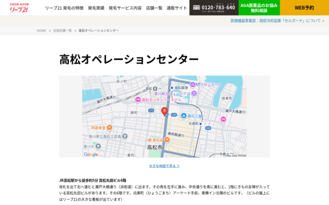 毛髪クリニック リーブ21 高松店は、副作用ゼロのAGA対策を掲げています。全国展開する毛髪専門サービスの高松店です。