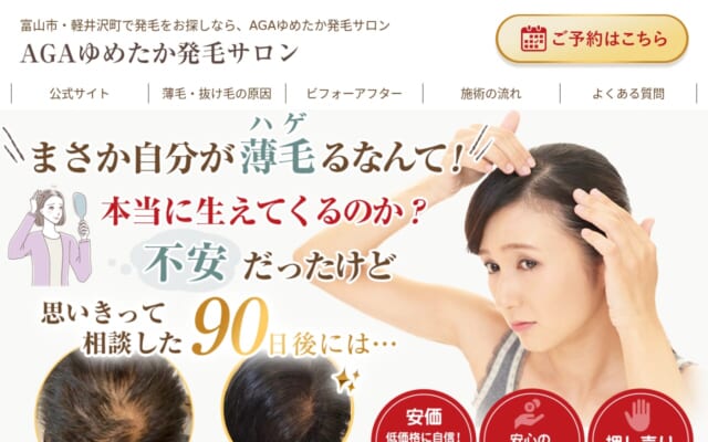 AGAゆめたか発毛サロン【富山市内で薬を使わない発毛施術】