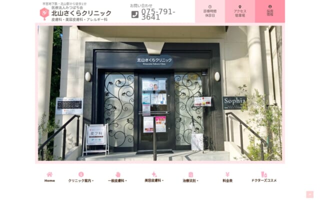 口コミでも評判で、同じ先生に経過を見てもらえるため安心して通えます。ドクターズコスメも豊富に取り扱っており、皮膚トラブル全般を相談できる点も魅力です。北山駅を利用する方にとって、最も通いやすいクリニックの一つです。