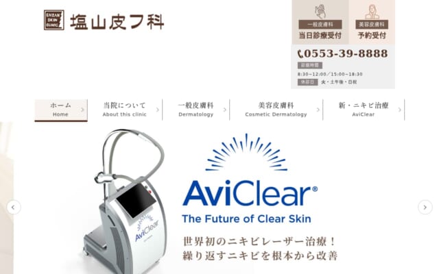 韮崎から車で約30分の甲州市塩山地区にある皮膚科クリニックです。公式サイトにAGA(男性型脱毛症)治療の記載があり、男性医師(院長)が担当します。一般皮膚科、美容皮膚科も併設しており、AGA治療は自費診療となる可能性が高いですが、保険証を持参の上受診することが推奨されています。
