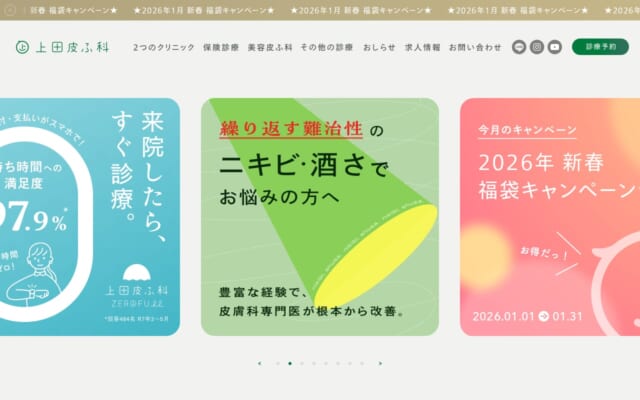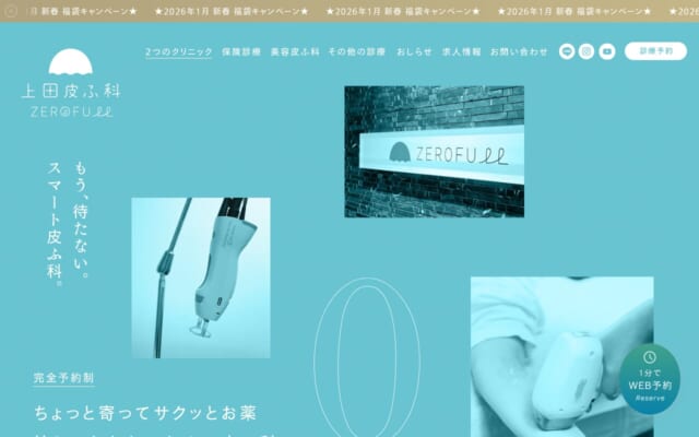 上田皮ふ科 ZERO FULLは、上田皮ふ科の分院として開院したクリニックで、待ち時間ゼロを目指した完全予約制が特徴です。