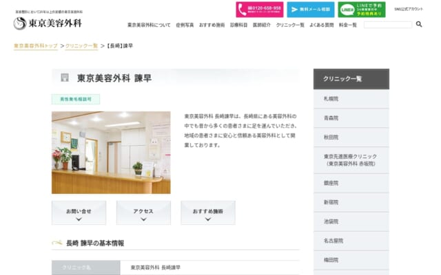 諫早駅周辺(大村から車で約15分)のおすすめAGA治療クリニックは「東京美容外科諫早院」