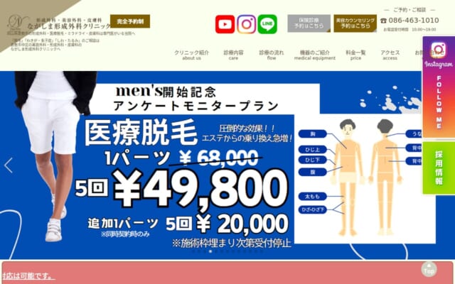 倉敷市(総社駅から車で約15分)のおすすめは「ながしま形成外科クリニック」