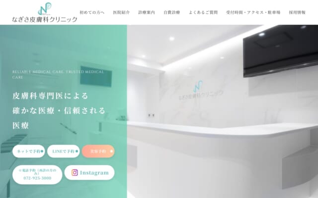 近鉄河内山本駅から徒歩2分のなぎさ皮フ科クリニックは、皮膚科専門医が診療を行っているクリニックです。