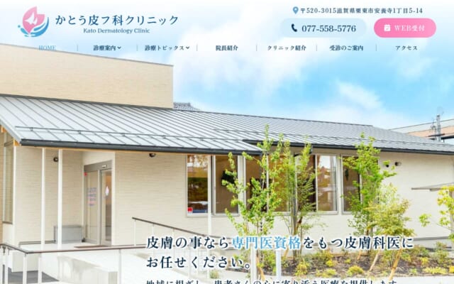 かとう皮フ科クリニックは、料金が明確で続けやすい価格設定が魅力です。栗東市内にある皮膚科専門医による丁寧な診察が評判のクリニックです。