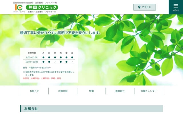 片岡クリニックは、予約不要で受付時間内はいつでも受診できるのが特徴です。泌尿器科・皮膚科・アレルギー科を診療する地域密着型のクリニックです。