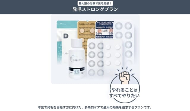「発毛ベーシックプラン」は、予防・発毛におけるAGA治療の基礎治療薬を処方する「発毛ライトプラン」にL-リジンのサプリも追加したものです。